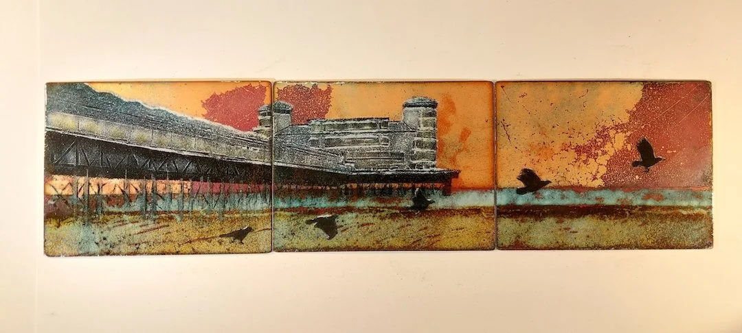 Enamel couples ancient history and my childhood with the here and now. There is an agelessness to the colour and materials of copper and glass fused in the heated furnace of the kiln and time.