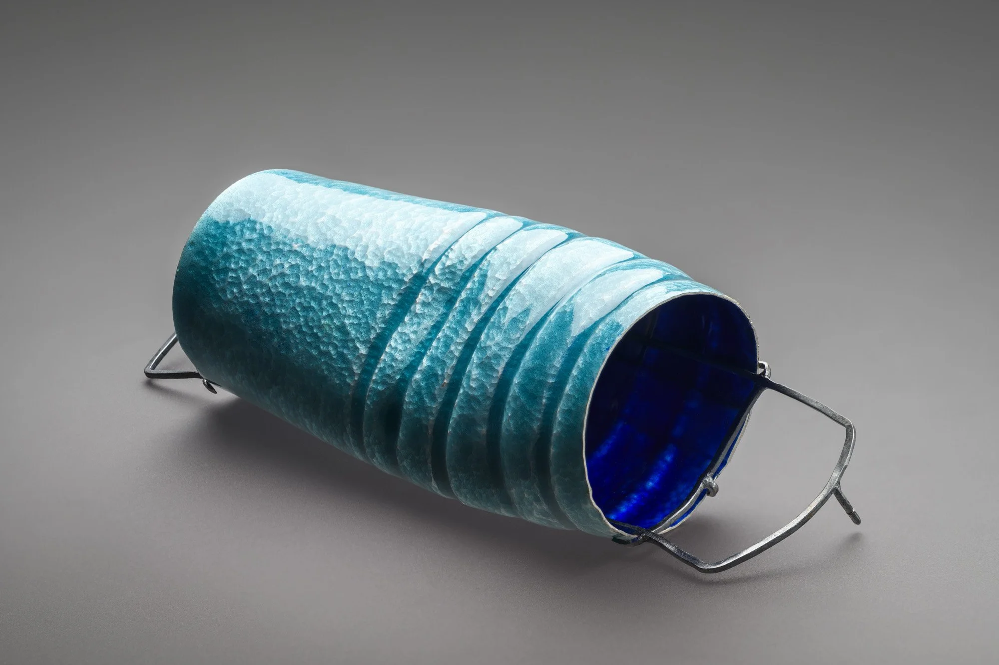 Much of my recent artwork is divided into 2 areas: fine silver and enamel objects that are the result of research into the qualities of the metal I use and how far I can push it – how thin can it be and still support itself and the enamel; will the solder joints survive being in the kiln a dozen times at 820°C; and will the piece manage being handled and exhibited; and enamelling on existing objects and pre-enamelled substrates which themselves can prove complex for a variety of reasons. I particularly enjoy enamelling vessel-like forms, whether they are objects or jewellery. While I have been using enamel in my practice since I was an undergraduate student at the Royal Melbourne Institute of Technology (RMIT), I really enjoy the challenges involved with this style of making and am currently working on new projects.