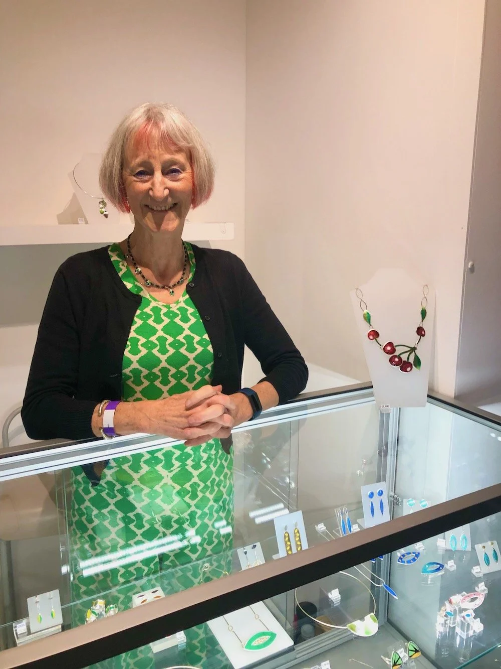Harriet studied jewellery making at Central School of art in the 70’s and graduated with a first. She set up a workshop with the help of a New Craftsman grant from the Craftscouncil, starting her career in Wales, up a track with outside loo! After moving to Bristol, Harriet spent many years teaching alongside making commissions and stocking galleries, at which time she took up enamelling and was hooked. She progressed from enamelling on copper to working on silver and now has collections in both metals.